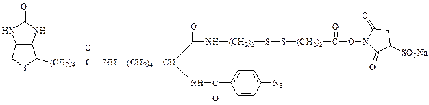 a sulfonated N-hydroxysuccinimide (Sulfo-NHS) active ester and a photoactivatable aryl azide, respectively. In addition, the linkage