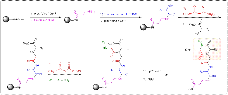 (DKPs), figure below) are prepared by solid-phase synthesis on a special